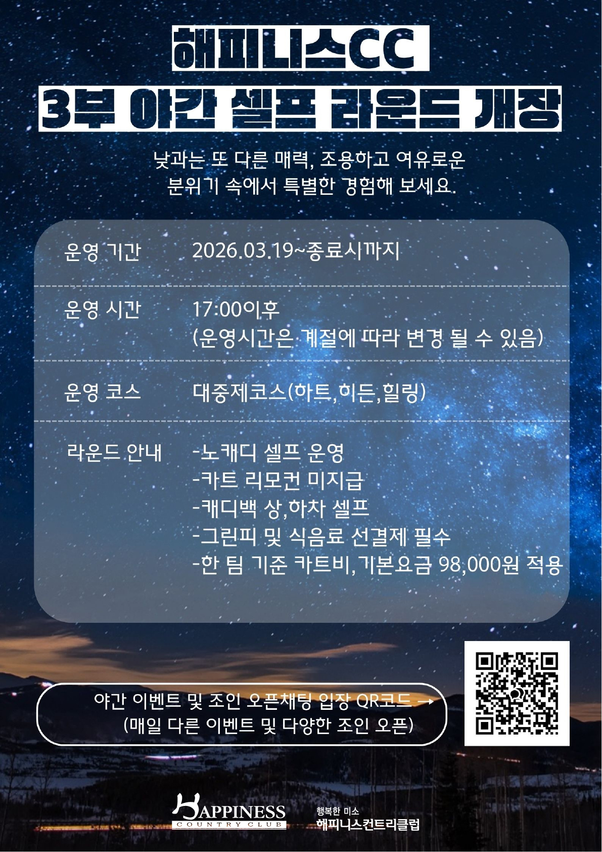 해피니스CC 3부 야간 셀프 라운드