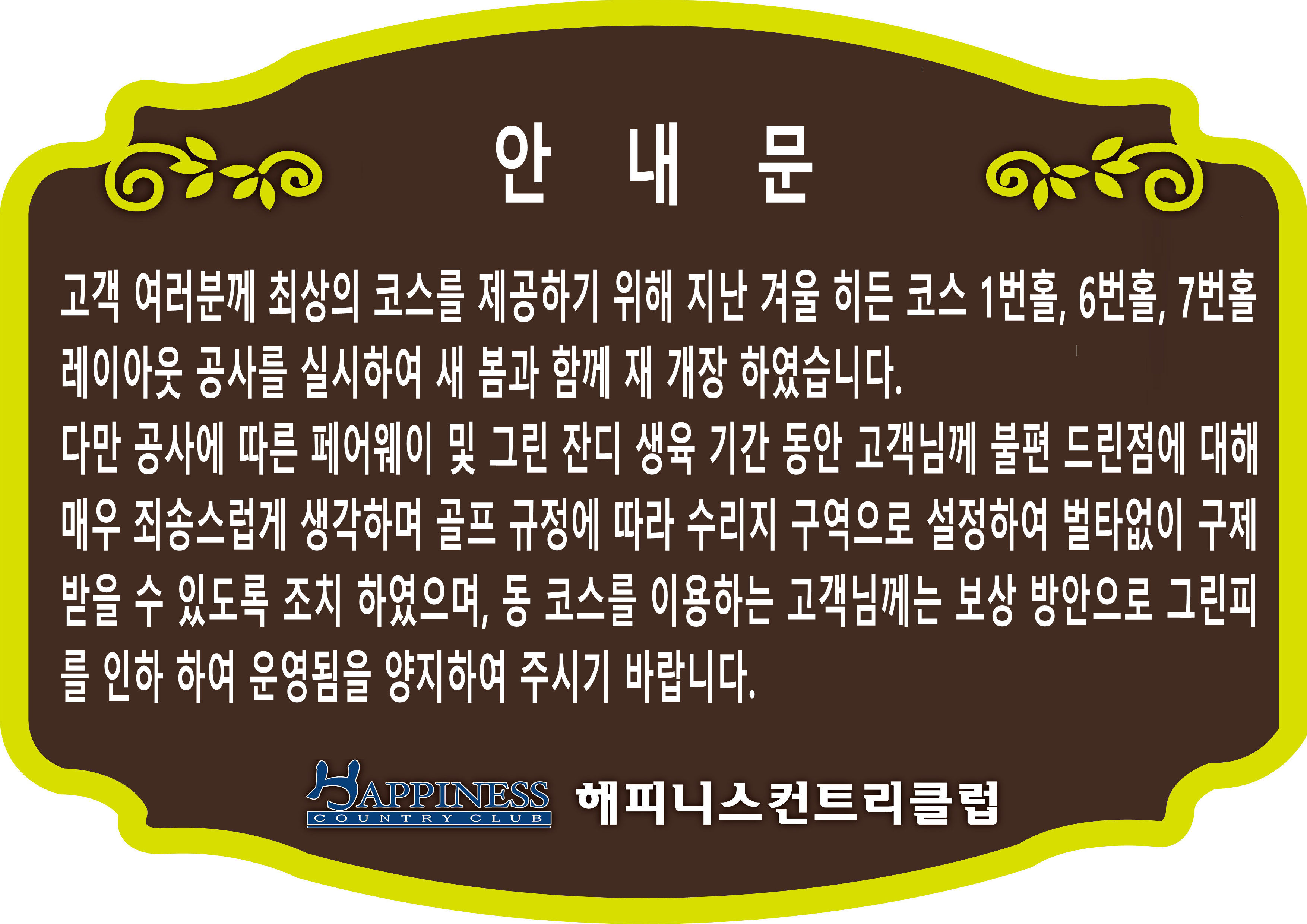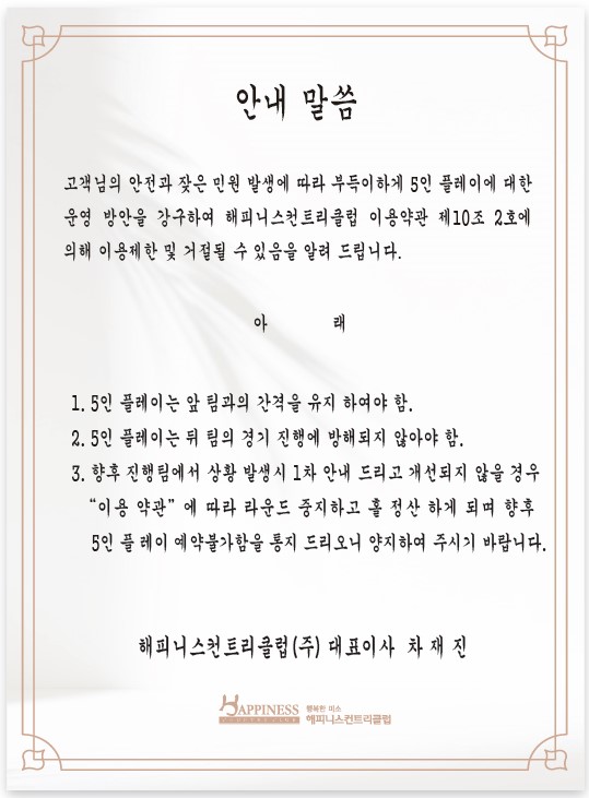 해피니스 컨트리클럽의 공지사항입니다.