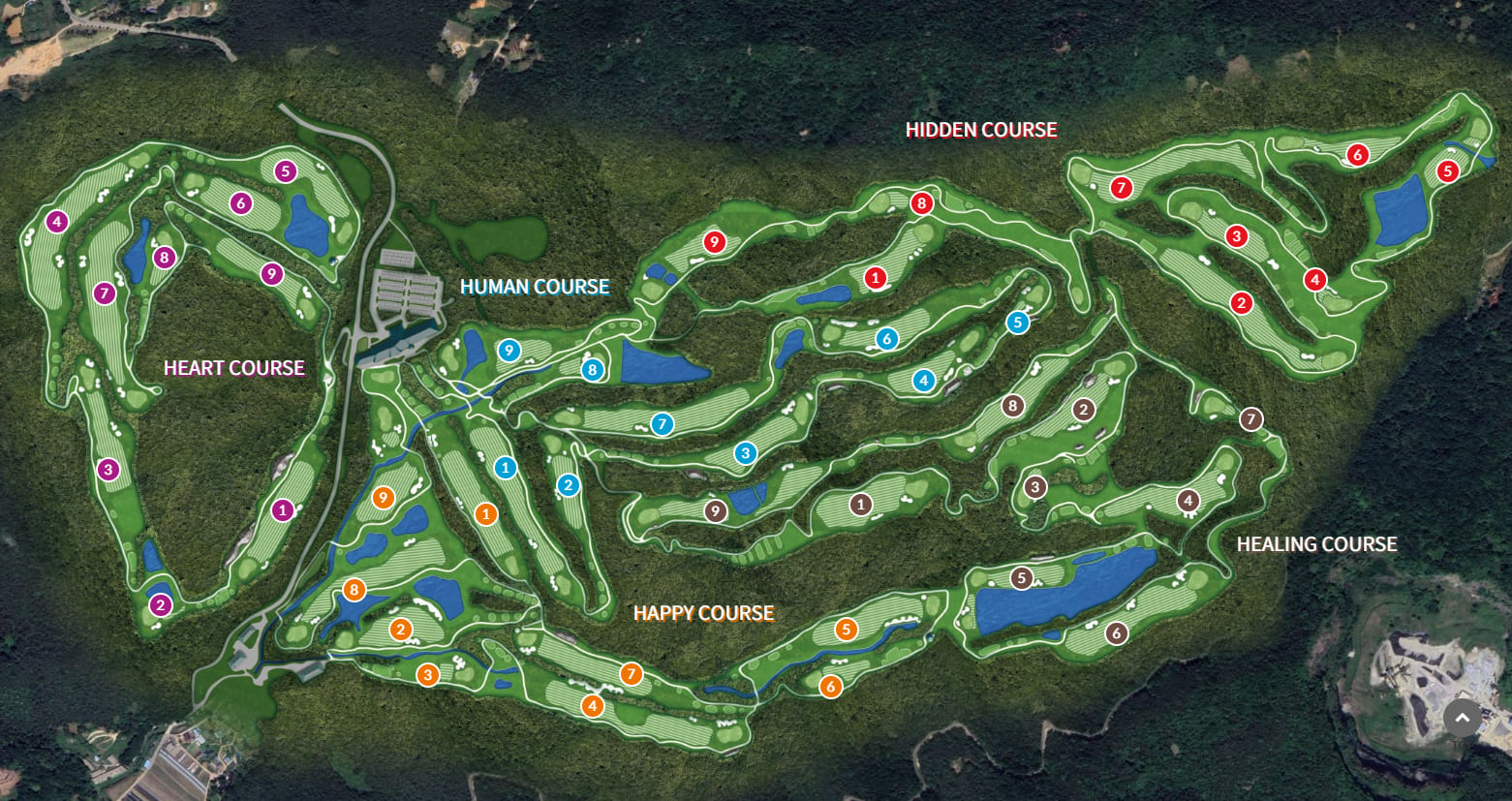 산과 계곡을 따라 자연 원형을 최대한 보존하면서 코스를 살포시 언저놓은 친환경 코스입니다. 난이도 높은 페어웨이와 종이를 구겨서 던져 높은듯한 파도 그린은 쉽게 공략을 허락하지 않습니다.